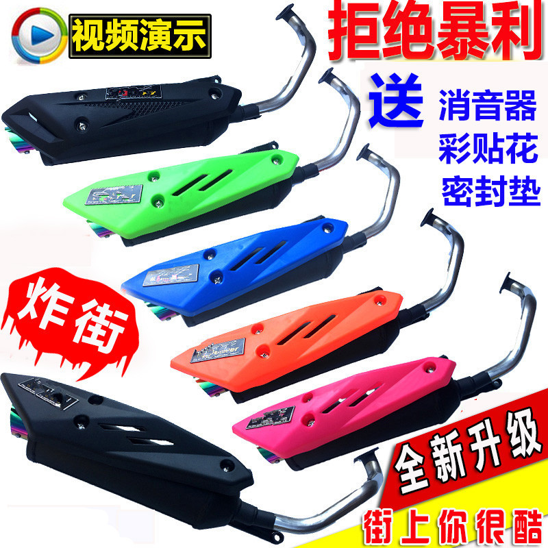 包邮踏板车助力车gy6静音排气管125鬼火150路虎摩托车消声器烟筒
