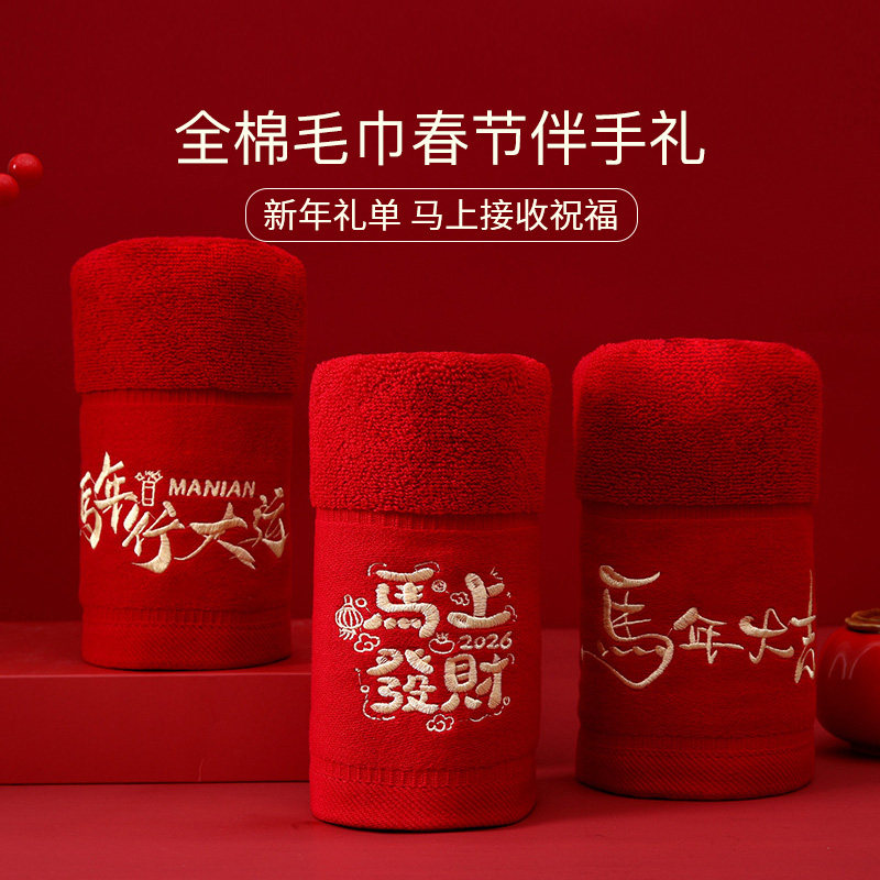 如奕马年限定酒红色毛巾礼盒装加厚全棉新年本命年春节面巾伴手礼