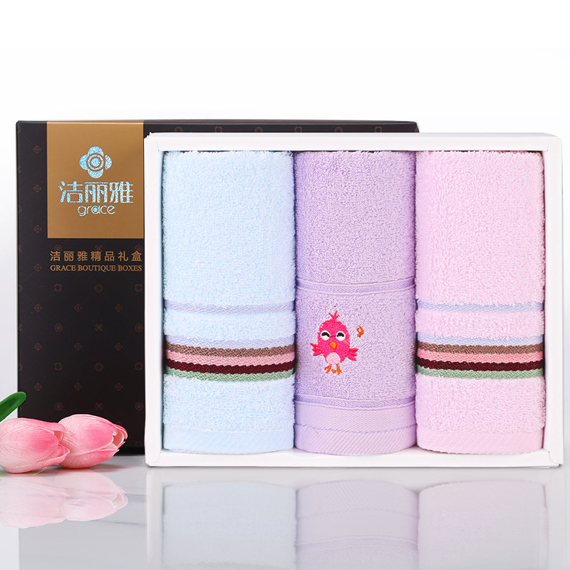 洁丽雅3条毛巾礼盒装亲子三件套装纯棉柔软吸水配小毛巾礼品 儿童
