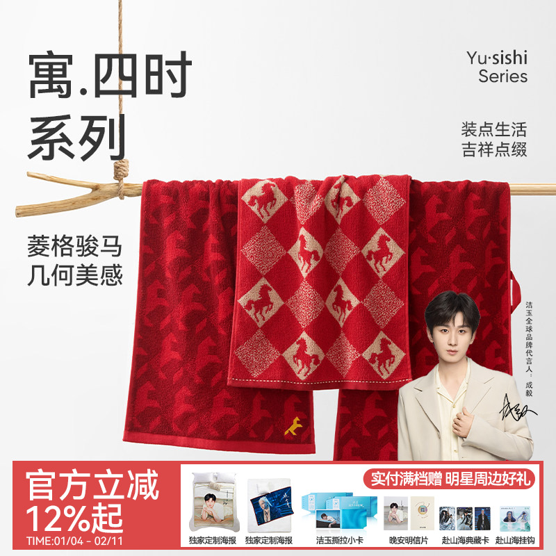 【成毅同款】洁玉马年生肖款长绒棉红毛巾礼盒装纯棉柔软送礼面巾