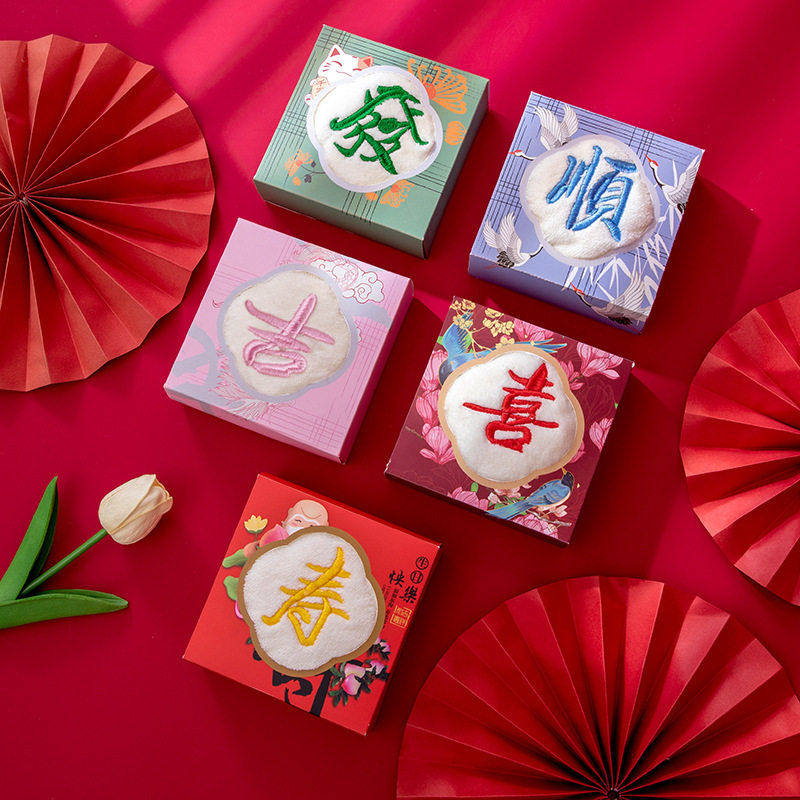 结婚喜字回礼红毛巾礼盒装批发婚礼红毛巾伴手礼结婚喜事高档礼盒