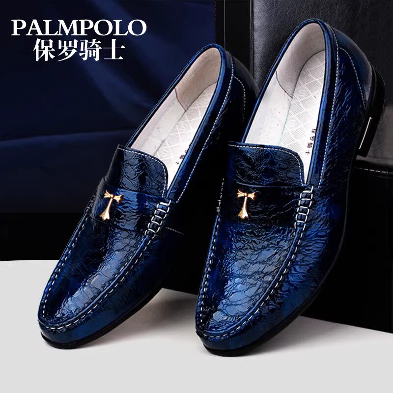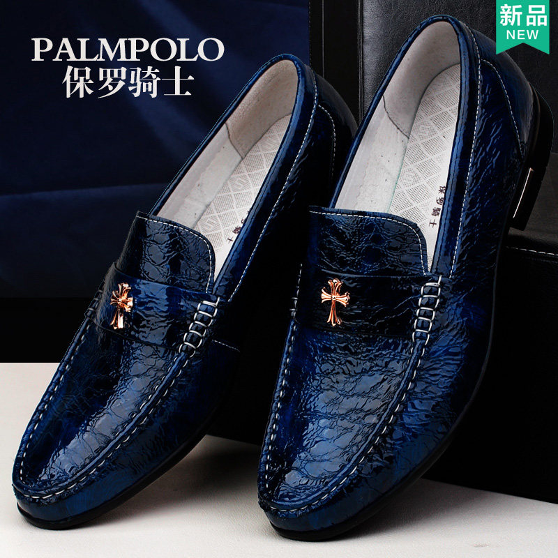 保罗骑士韩版潮春季商务男鞋豆豆鞋男真皮男士皮鞋蓝色休闲鞋子男
