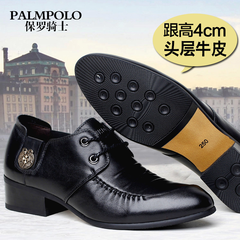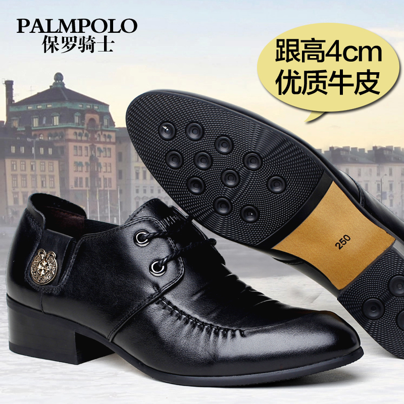 保罗骑士韩版真皮高跟男鞋尖头商务皮鞋英伦透气增高鞋鞋子男37码