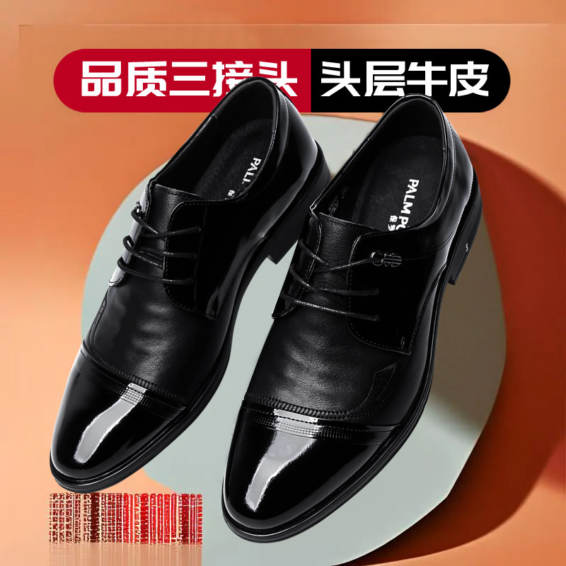 保罗骑士男鞋商务正装皮鞋真皮舒适休闲单鞋英伦风系带办公室鞋男