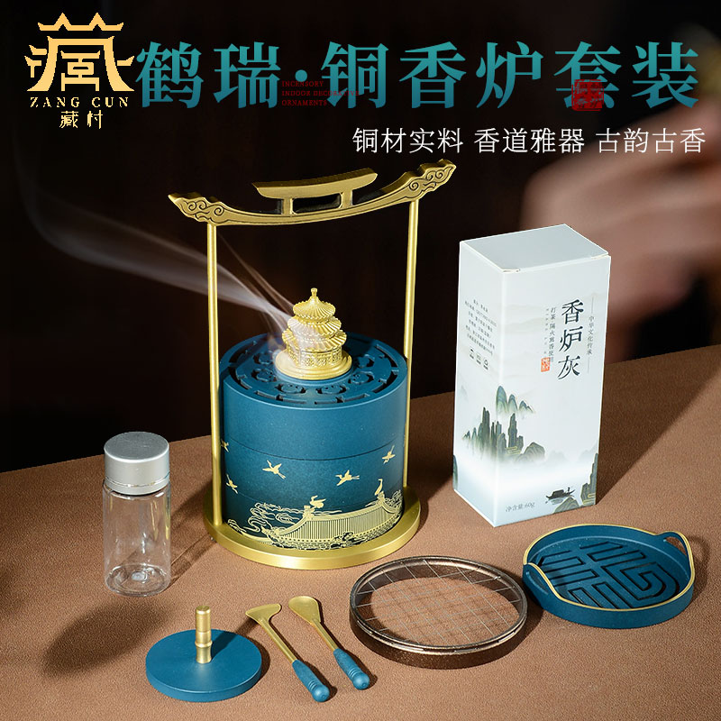 鹤瑞呈祥铜香炉 打香篆工具伴手礼家用熏香炉 檀香炉香道套装礼盒