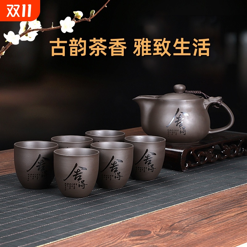 .紫砂壶功夫茶具套装家用小简约整套中式复古茶杯子6只装喝茶陶瓷