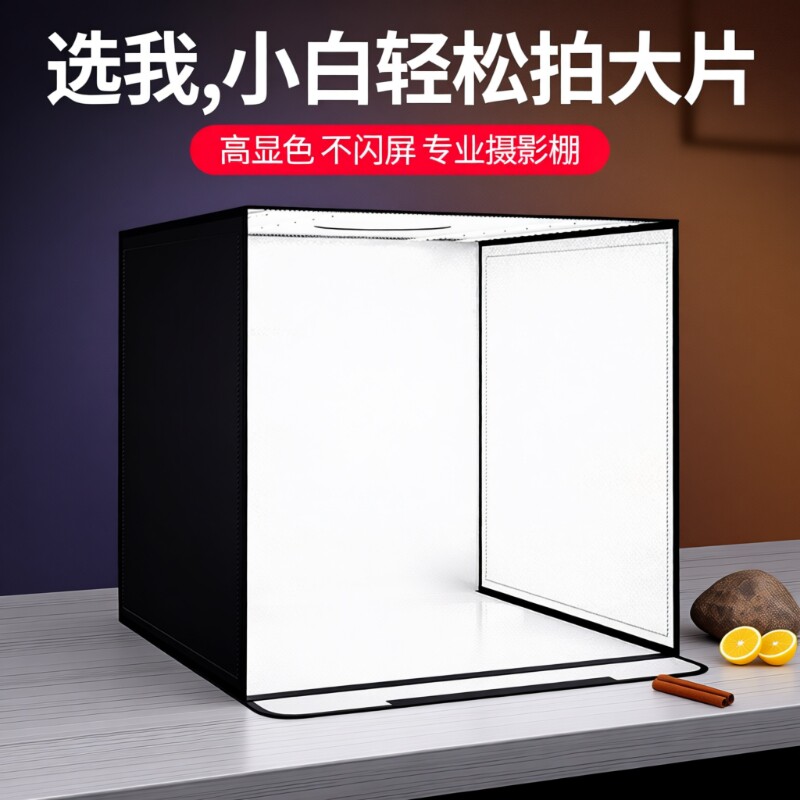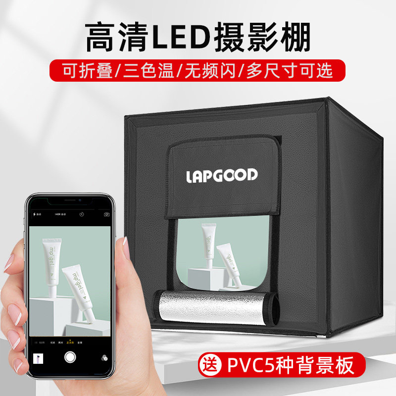 电商拍照摄影棚小型led产品灯箱静物拍摄台道具专业白底无影图背景板珠宝补光灯简易折叠便携式柔光箱灯光