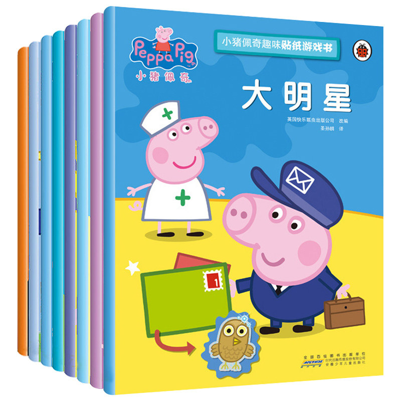 小猪佩奇趣味贴纸游戏书 全8册 PeppaPig粉红猪小妹正版全套 宝宝益智贴纸动手动脑力开发 幼儿早教认知