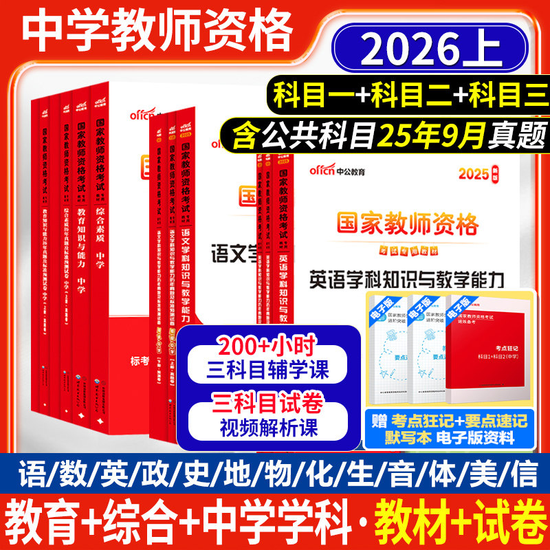 教资真题上半年中公2026年教师资格证考试教师证中学小学笔试资料初中语文数学英语物理化学生物历史体育音乐美术试卷上科目一二三