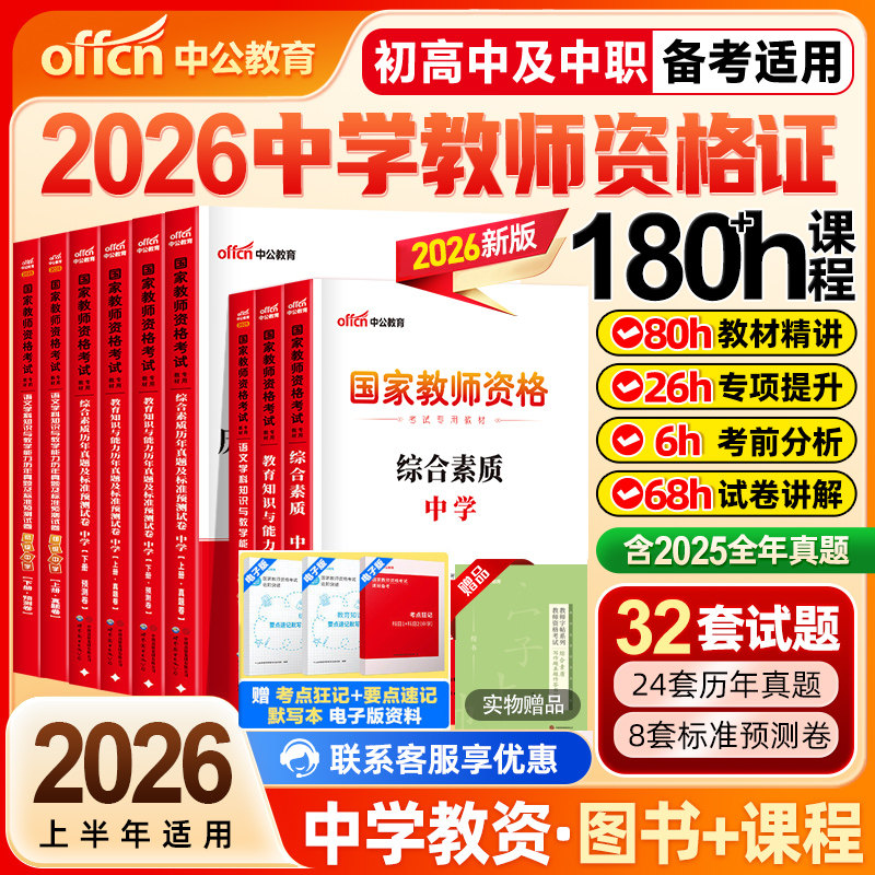 中公2026上半年教资考试资料中学2025教师证资格考试用书教材真题初中高中数学语文英语美术体育音乐政治历史地理物理化学生物信息