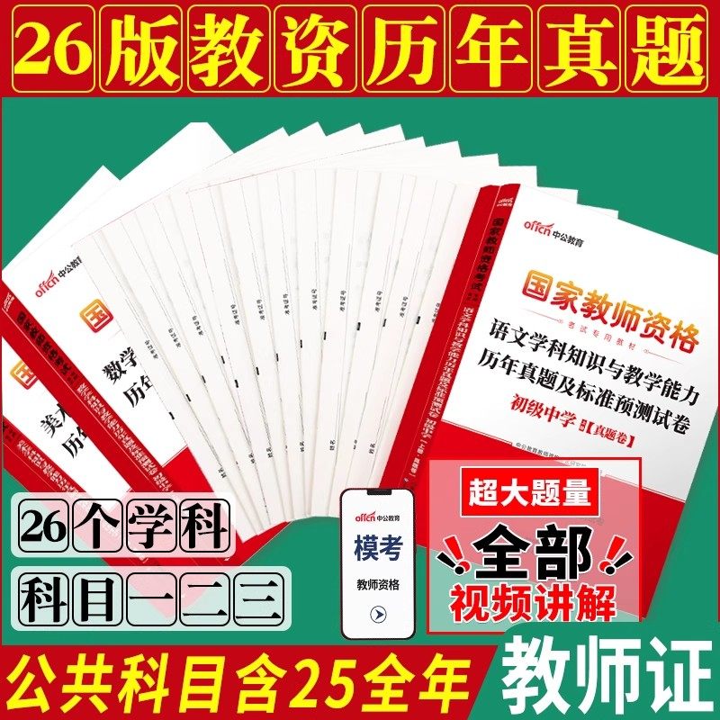中公教2026上半年国家教师资格证考试历年真题试卷中学教资综合素质教育知识教学能力初高中语文数学英语美术化学政治历史生物理