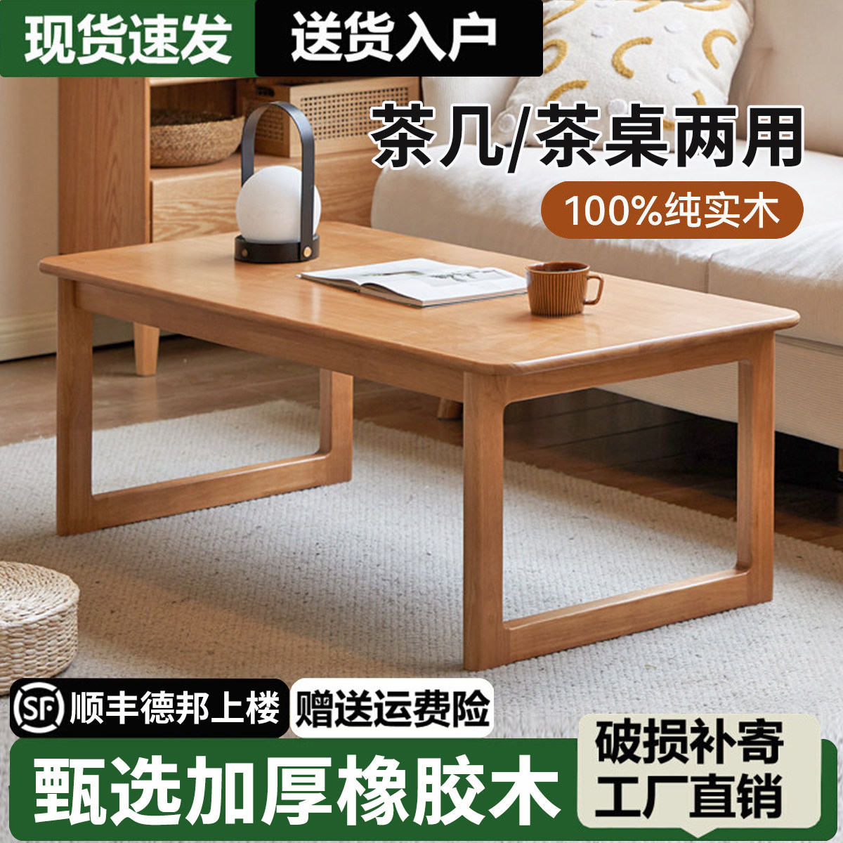 侘寂风实木茶桌茶台现代简约家用客厅茶几小户型橡胶木长方形桌子