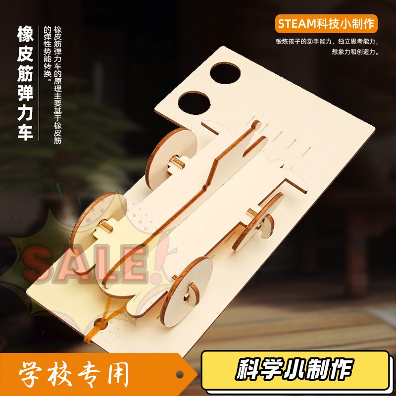 橡皮筋弹力车科学小制作DIY儿童科学实验教具自制弹射小车AA84