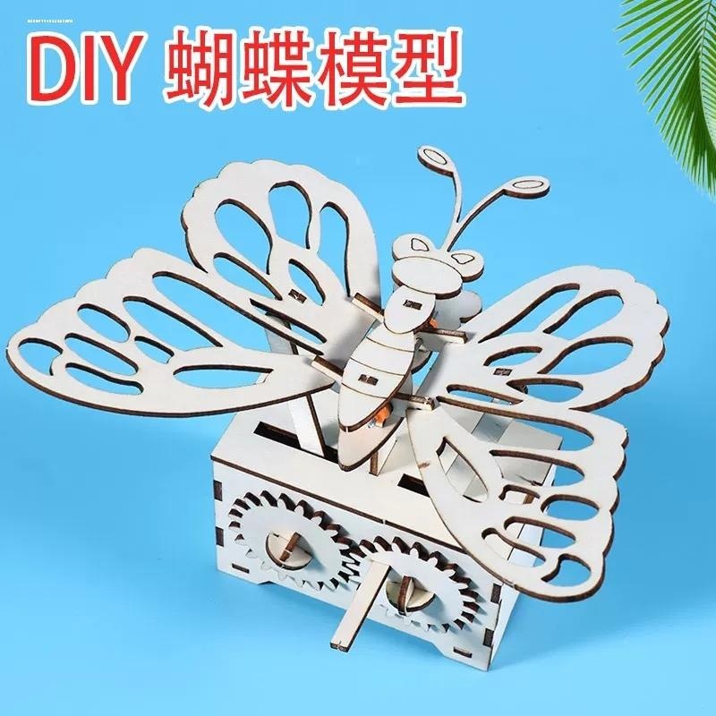 科学小制作DIY电动蝴蝶飞舞儿童STEAM教育齿轮传动机械原理课