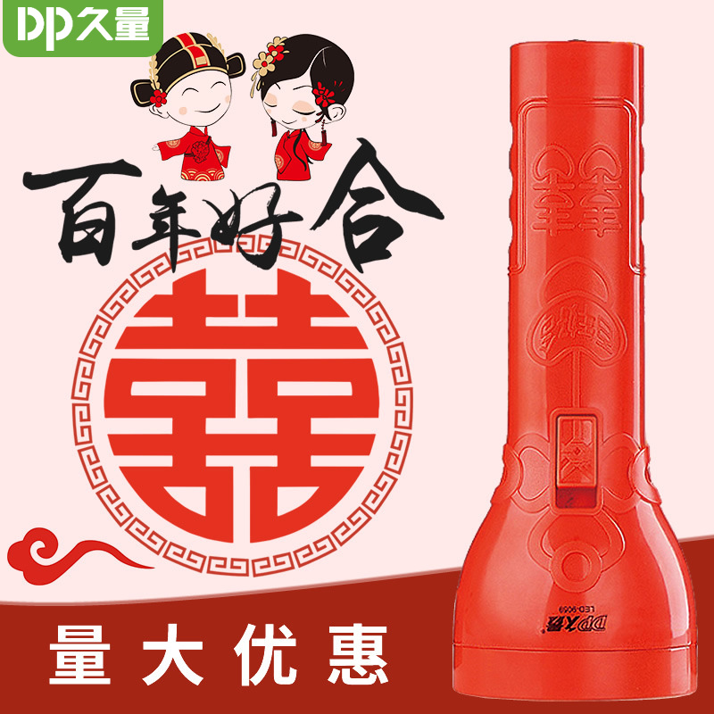 久量LED充电手电筒强光红色喜庆结婚礼喜事字超亮远射家用手电筒
