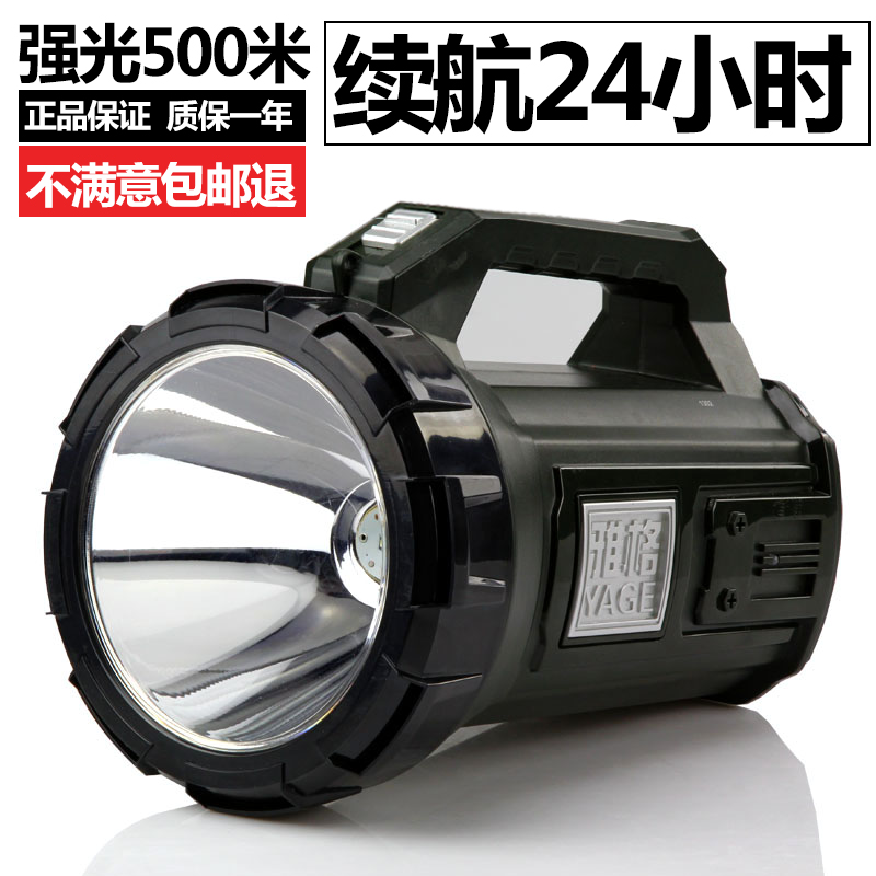 雅格探照灯LED强光充电式远程高亮远射手提灯矿灯家用手电筒手灯