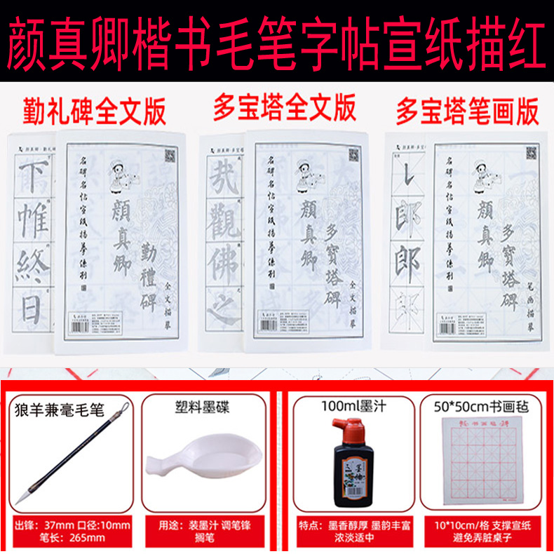 颜真卿楷书多宝塔碑勤礼碑颜体毛笔字帖宣纸描红中小学生书法练习成人初学者毛笔字入门临摹宣纸笔墨纸砚套装