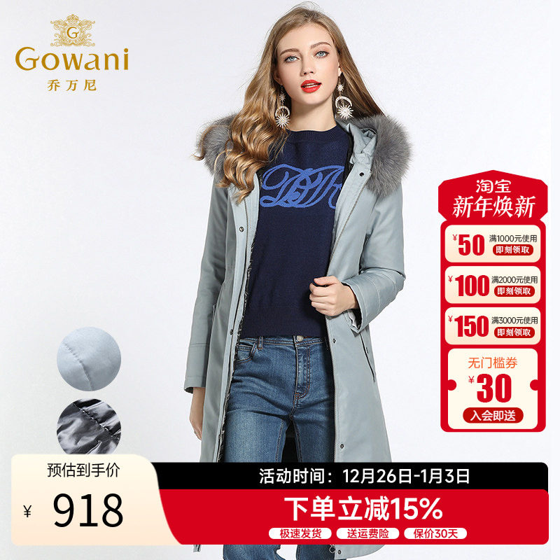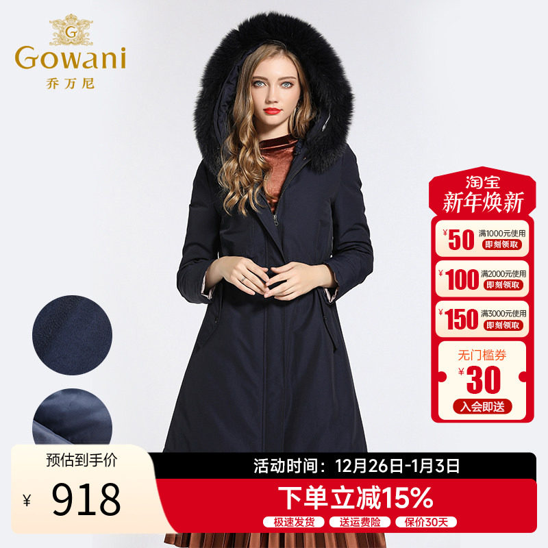 乔万尼商场冬季新款欧洲站两面穿收腰保暖大毛领派克羽绒服女中长