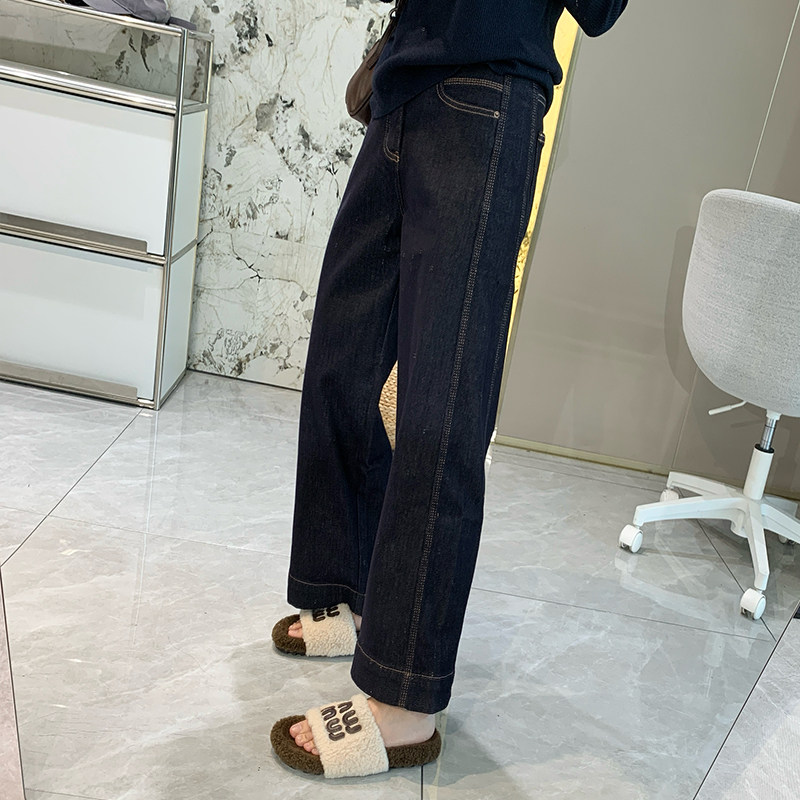 清仓特价 立体侧骨加绒弹力直筒牛仔裤女秋冬新款显瘦高腰阔腿裤