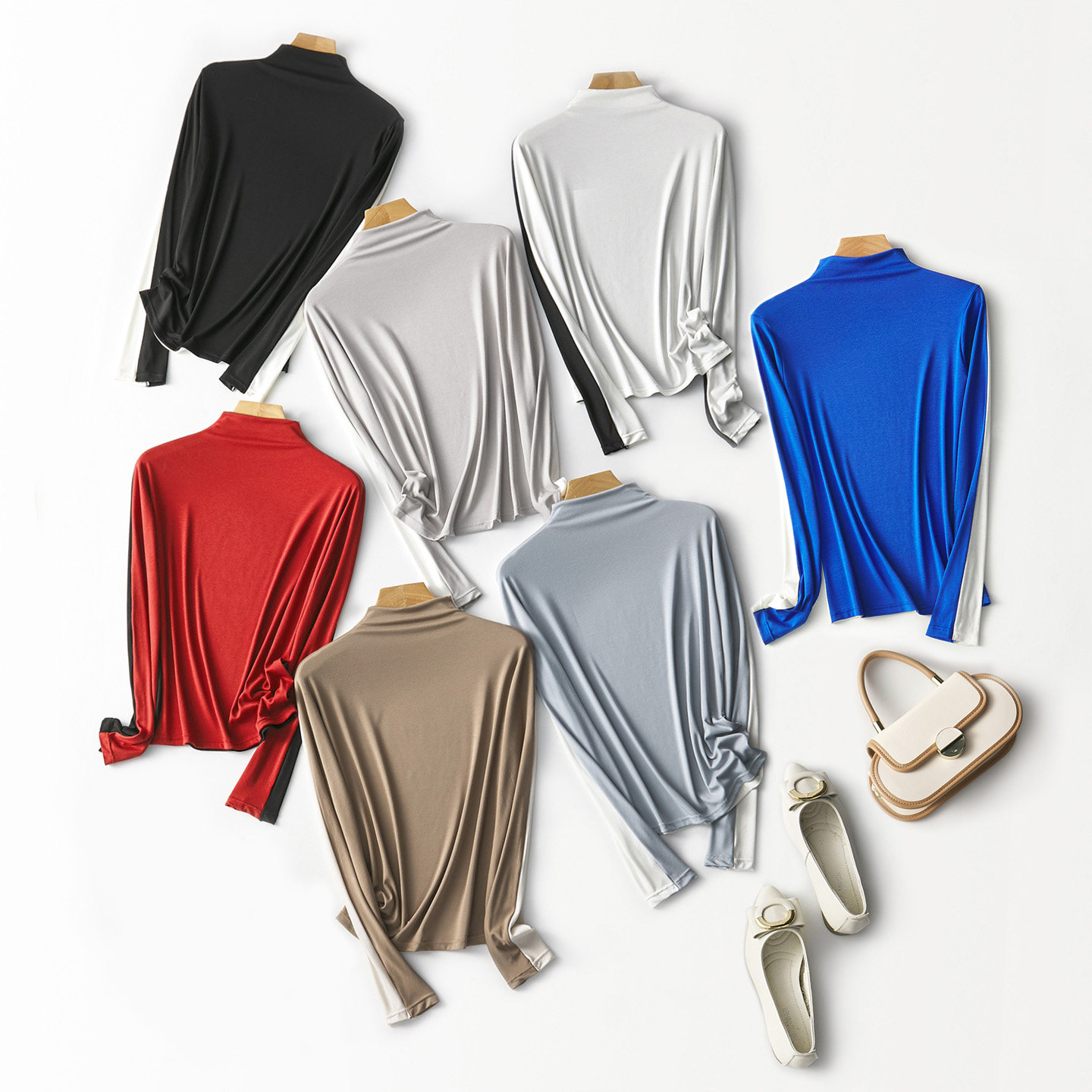 特价清仓“肌底液”AB面前后两穿设计撞色半高领T恤自由领打底衫