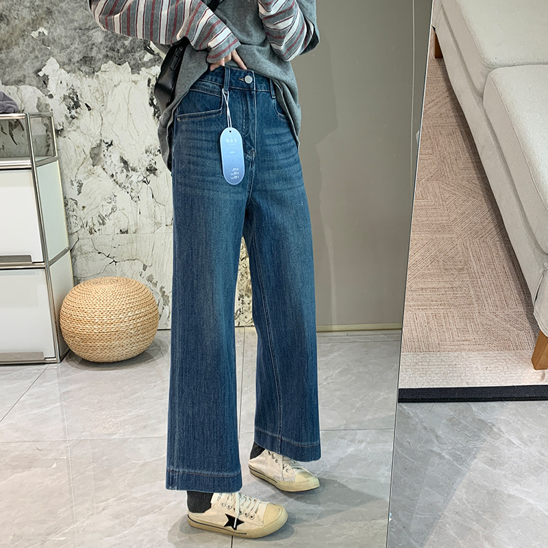 清仓特价 垂感四面弹牛仔裤女秋季新直筒奶奶裤九分小个子阔腿裤
