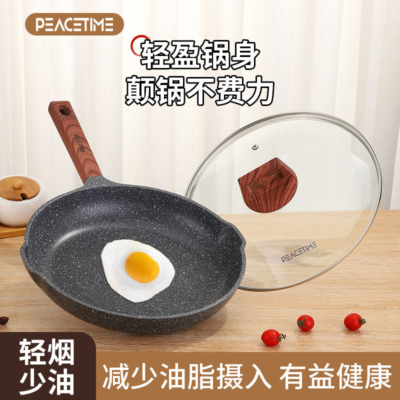 麦饭石家用平底锅煎蛋牛排烙饼不粘好清洗无油烟电磁炉燃气灶通用