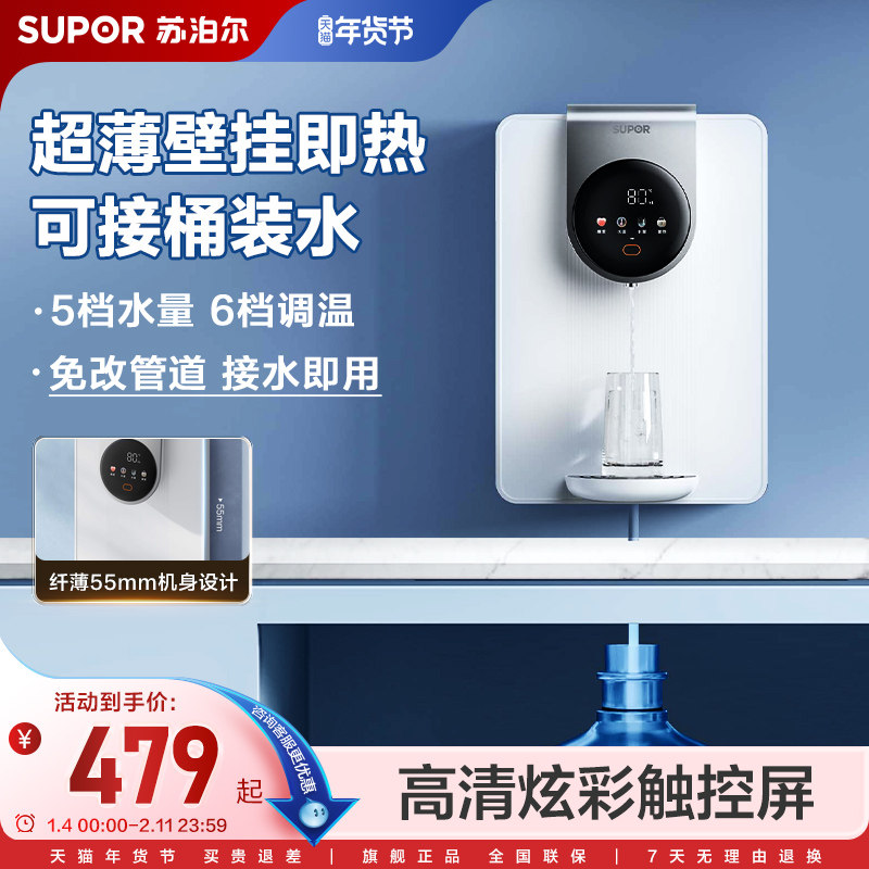 苏泊尔UG02A管线机2025新款家用壁挂式直饮机接桶装水即热饮水机