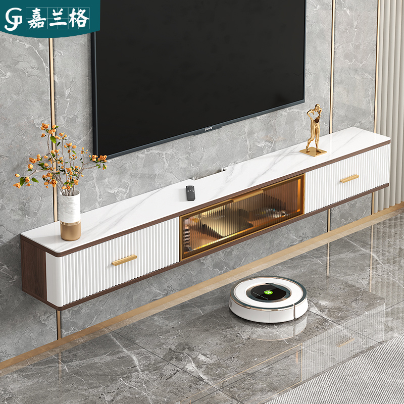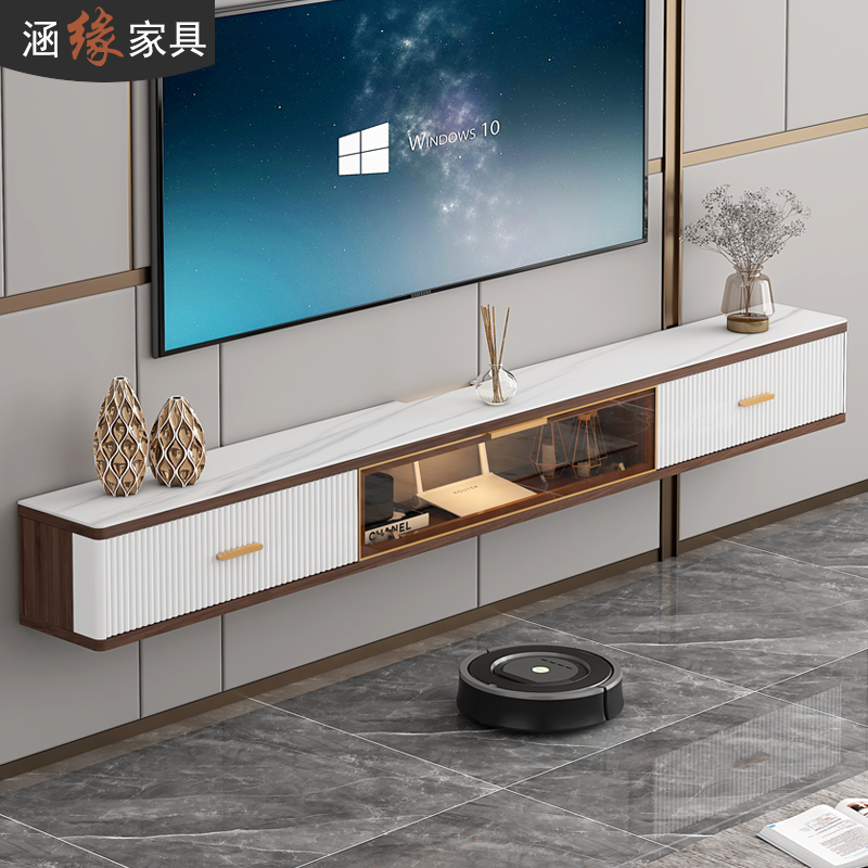 岩板悬空壁挂式电视柜现代简约轻奢茶几组合小户型挂墙客厅墙柜窄