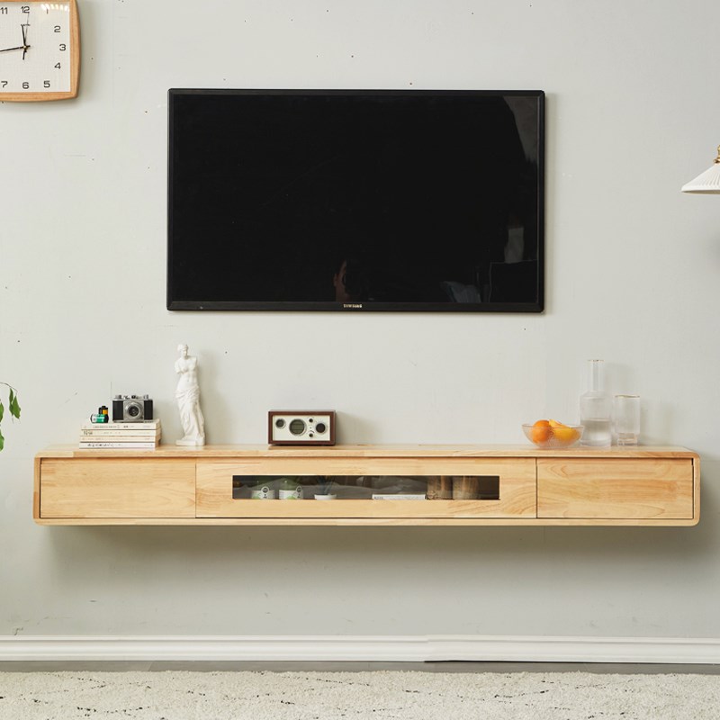 实木悬空壁挂式电视柜悬挂客厅挂墙小户型日式原木风极简悬浮上墙