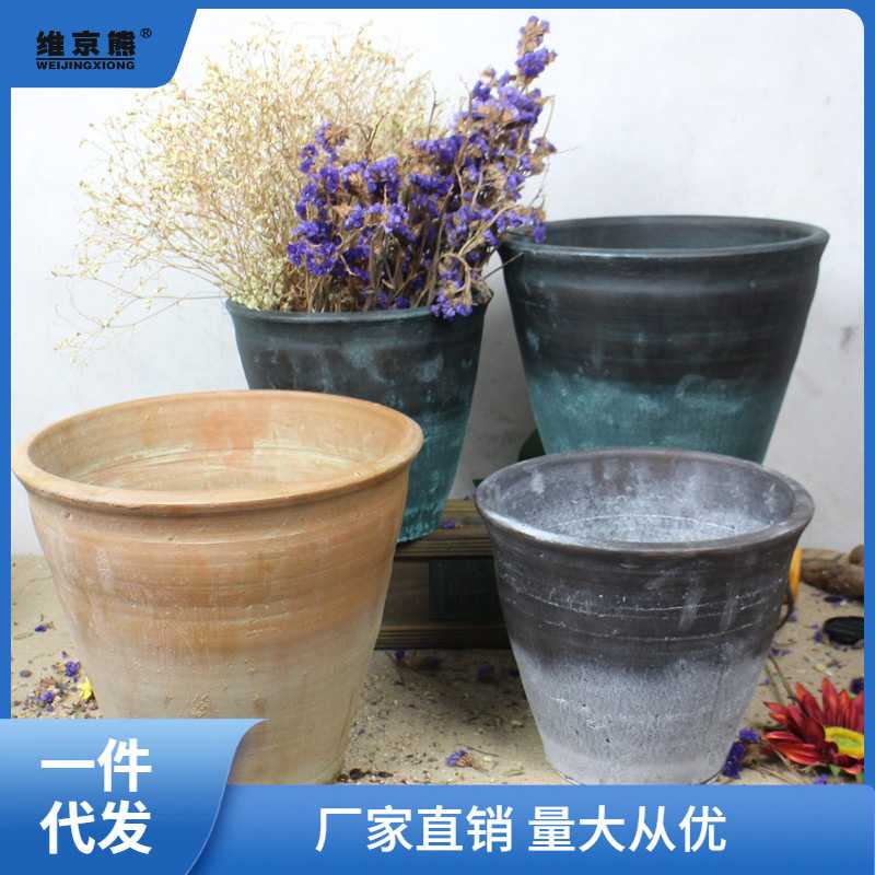 景德镇陶瓷器粗陶陶罐花盆花器插干花花瓶复古透气室内外种植鲜花