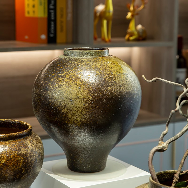 景德镇纯手工怀旧文艺侘寂风复古粗陶花器客厅玄关民宿插干花花瓶