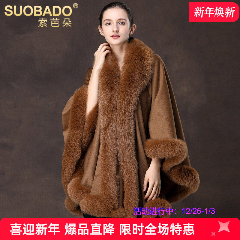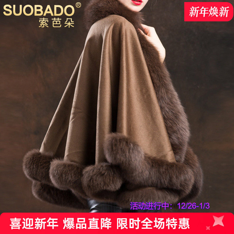 海宁狐狸毛皮草大披肩2026新款外套女羊毛呢斗篷保暖羊绒大衣披风