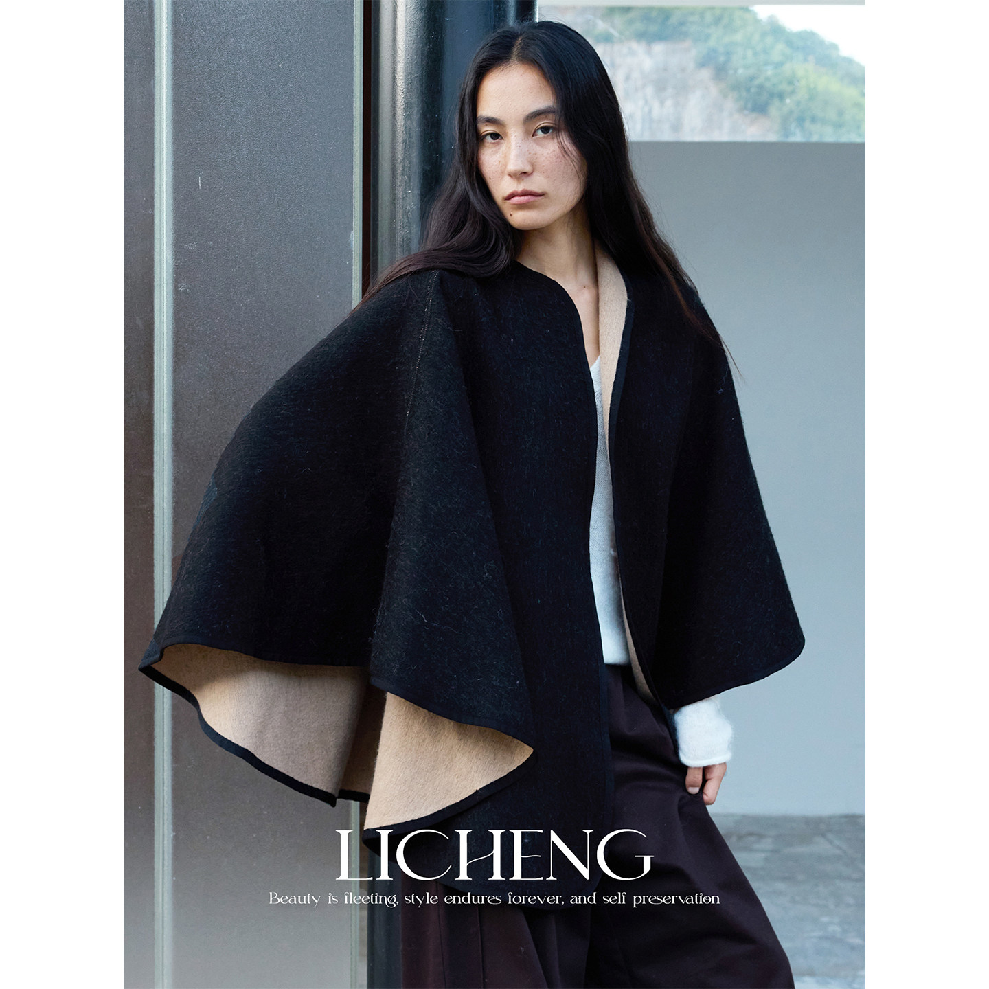 礼诚 羊毛斗篷披肩双面可穿毛呢大衣外套女秋冬高级显贵保暖上衣
