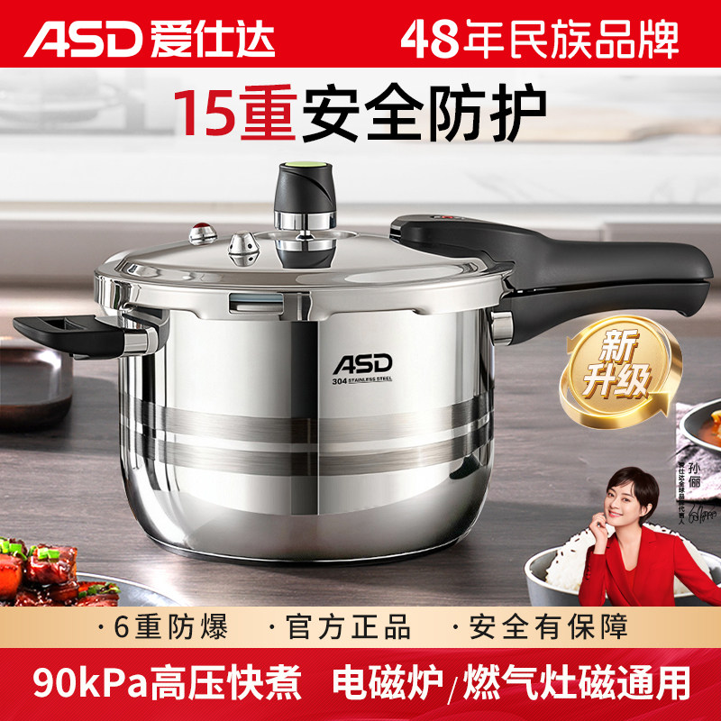 爱仕达官方旗舰店高压锅304不锈钢家用燃气电磁炉通用防爆压力锅
