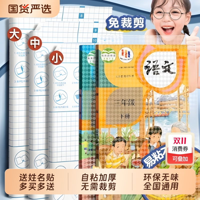 小学生包书套环保包书纸书套透明包书皮书壳防水书本保护套一二三四年级套装16K课本书膜自粘大中小号A5B5A4