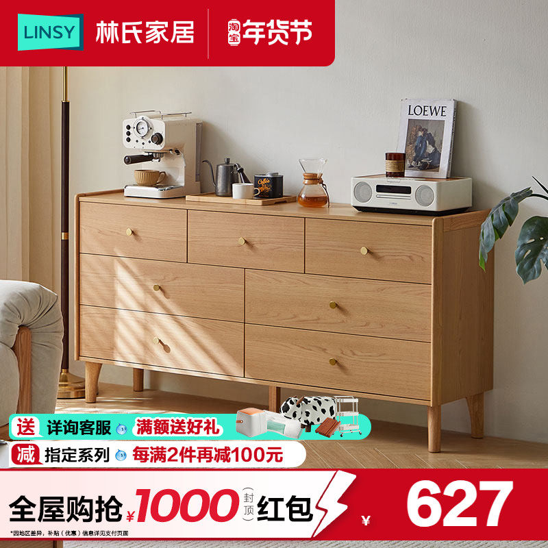 林氏家居抽屉九斗柜客厅餐边柜靠墙收纳柜子实木脚卧室床尾储物柜