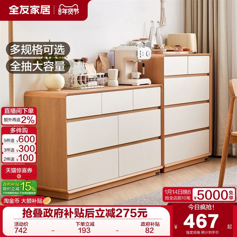 全友家居奶油原木风九斗柜卧室床尾储物抽屉柜客厅靠墙沙发旁边柜