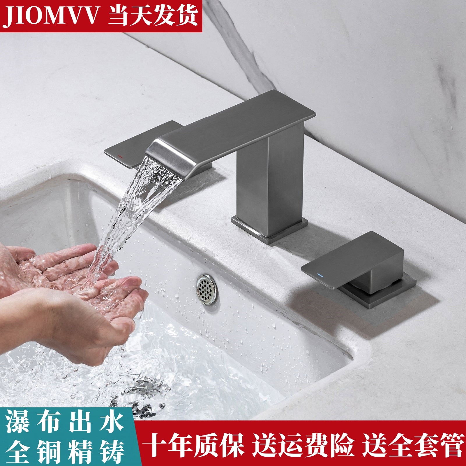 铜芯卫生间洗脸盆双三孔水龙头浴室洗手盆混水阀瀑布面盆冷热龙头
