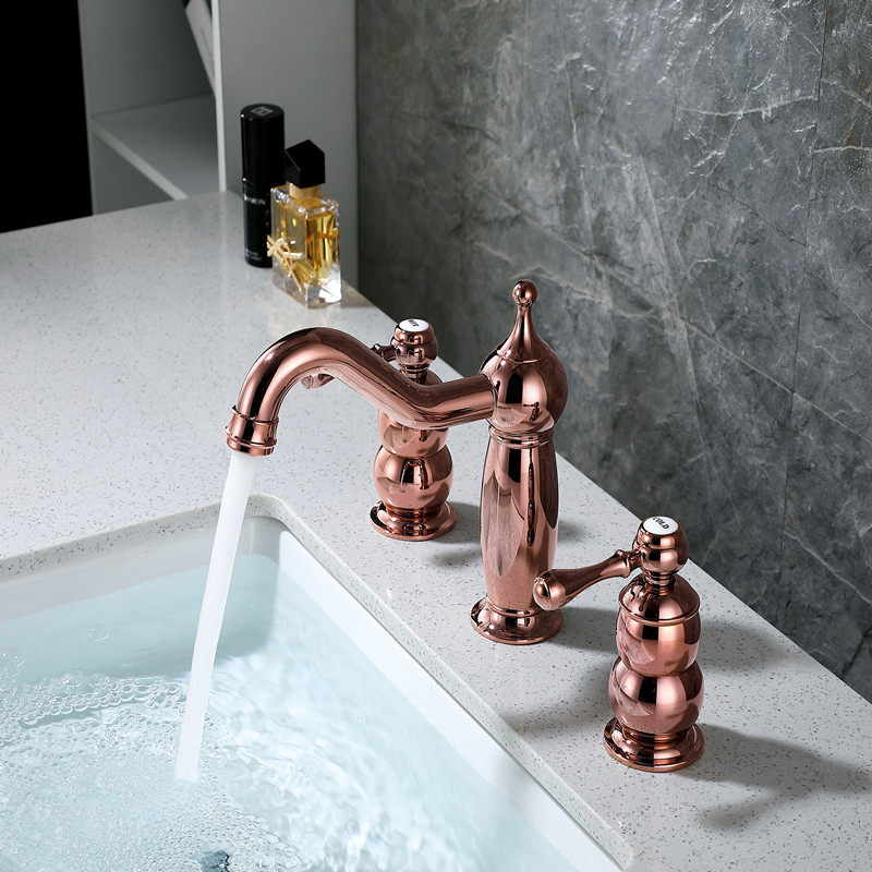 欧式玫瑰金面盆三孔水龙头浴室柜卫生间三件套分体式全铜冷热龙头
