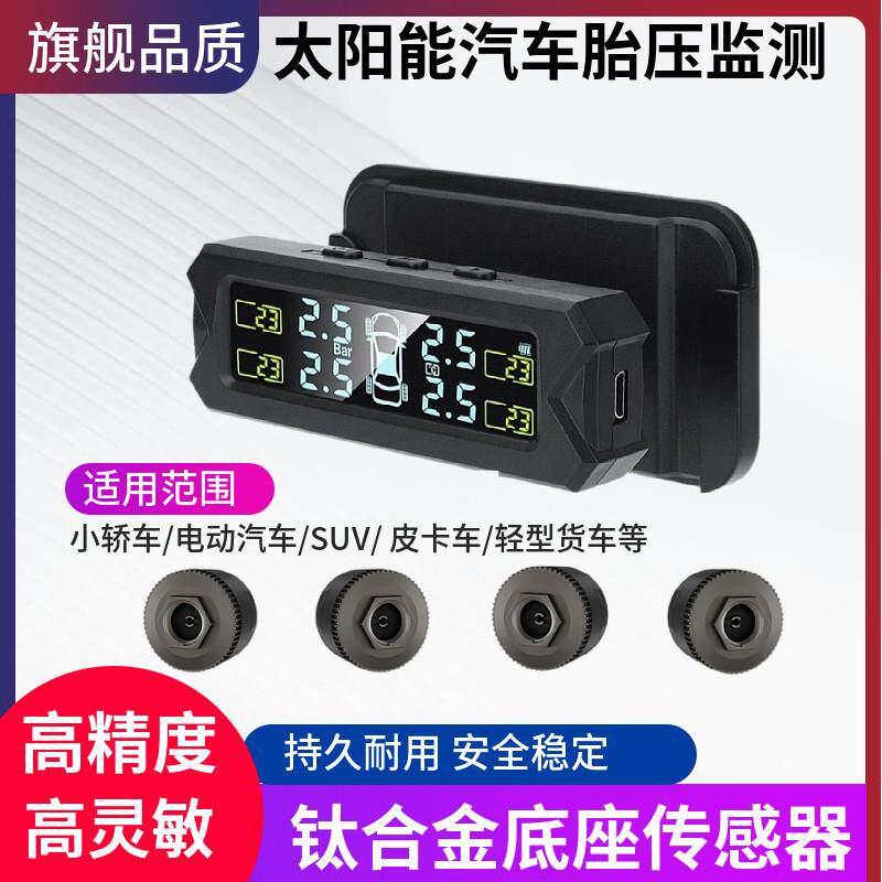 汽车胎压监测器外置通用轮胎缺气报警装置无线太阳能数显高精检测