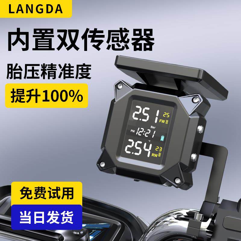 太阳能摩托车胎压监测器高精度机车轮胎外置无线内置电动车检测仪