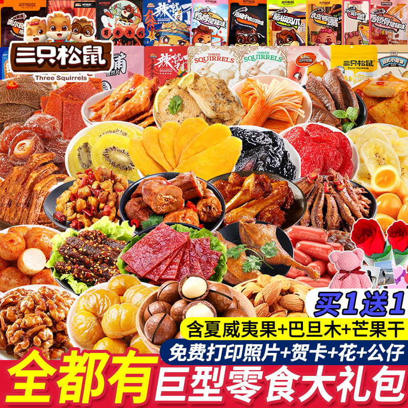 三只松鼠巨型零食网红大礼包坚果肉干食品解馋年货送女友生日礼物