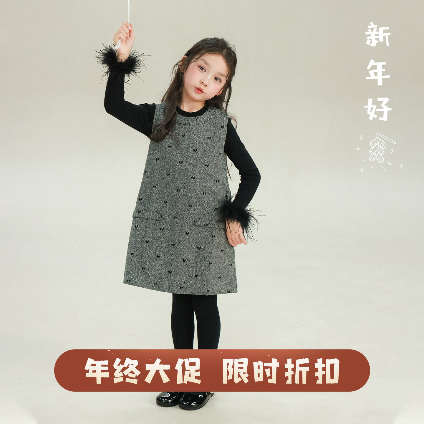 大耳象女童暗纹蝴蝶结背心裙冬季新款宝儿气质缎面无袖连衣裙子厚