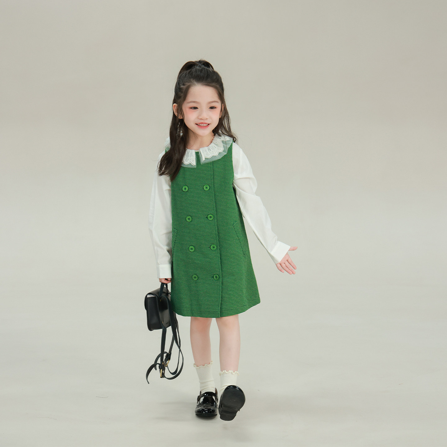 女童复古格子毛呢背心裙秋冬儿童洋气甜美女中小童宝宝无袖连衣裙
