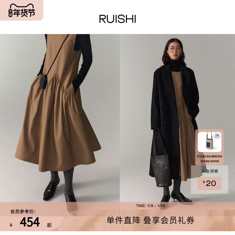 RUISHI芮时 美拉德穿搭 不规则结构设计感背心裙无袖连衣裙女秋冬