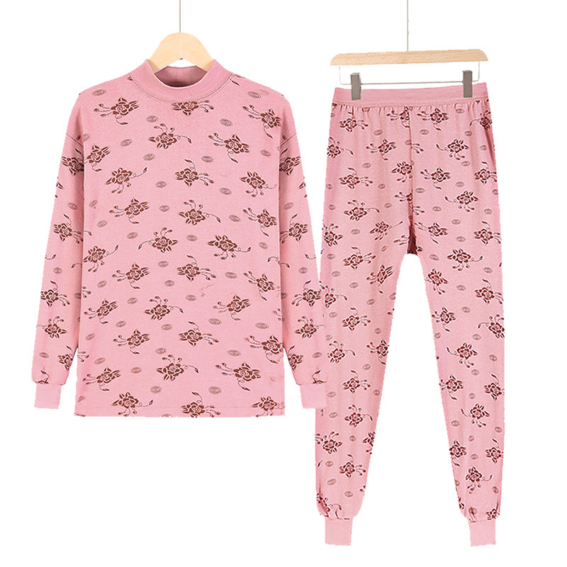花系保暖内衣女薄款秋衣秋裤套装少女打底棉毛衫紧身线衣线裤冬季