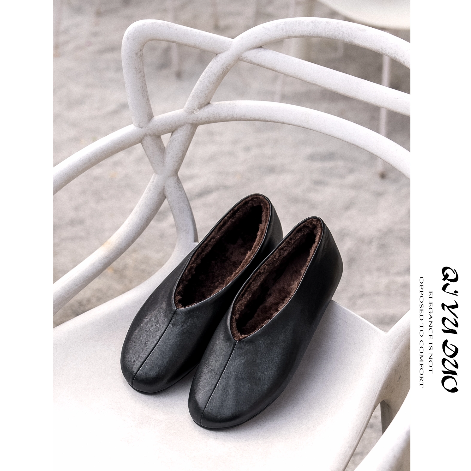 V5 VIWU·VIFIVE「絮桃」羊卷毛单鞋女款秋冬芭蕾风气质毛毛鞋子
