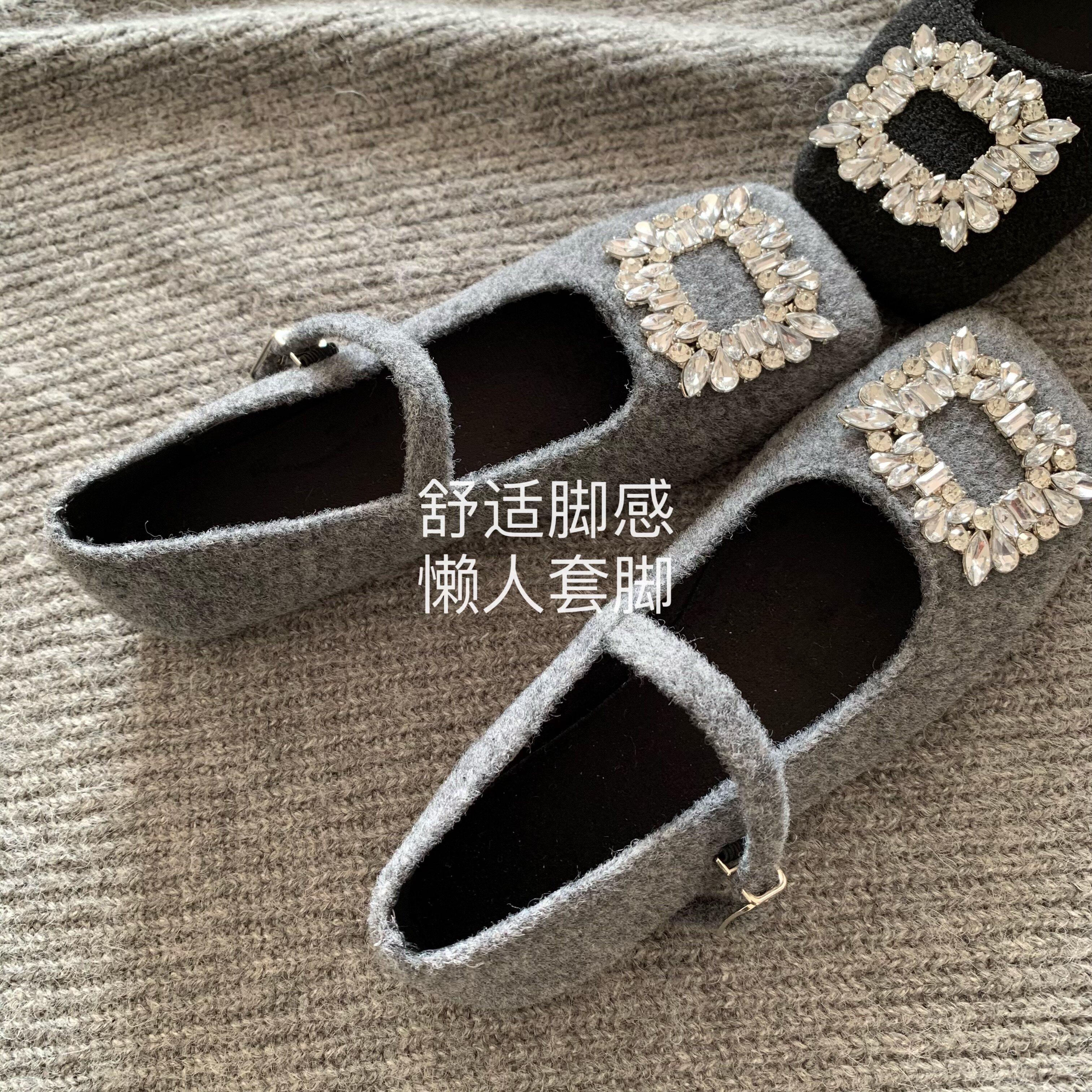 高奢灰~INS露丝同款毛呢玛丽珍鞋女秋冬外穿老钱风方头毛毛单鞋
