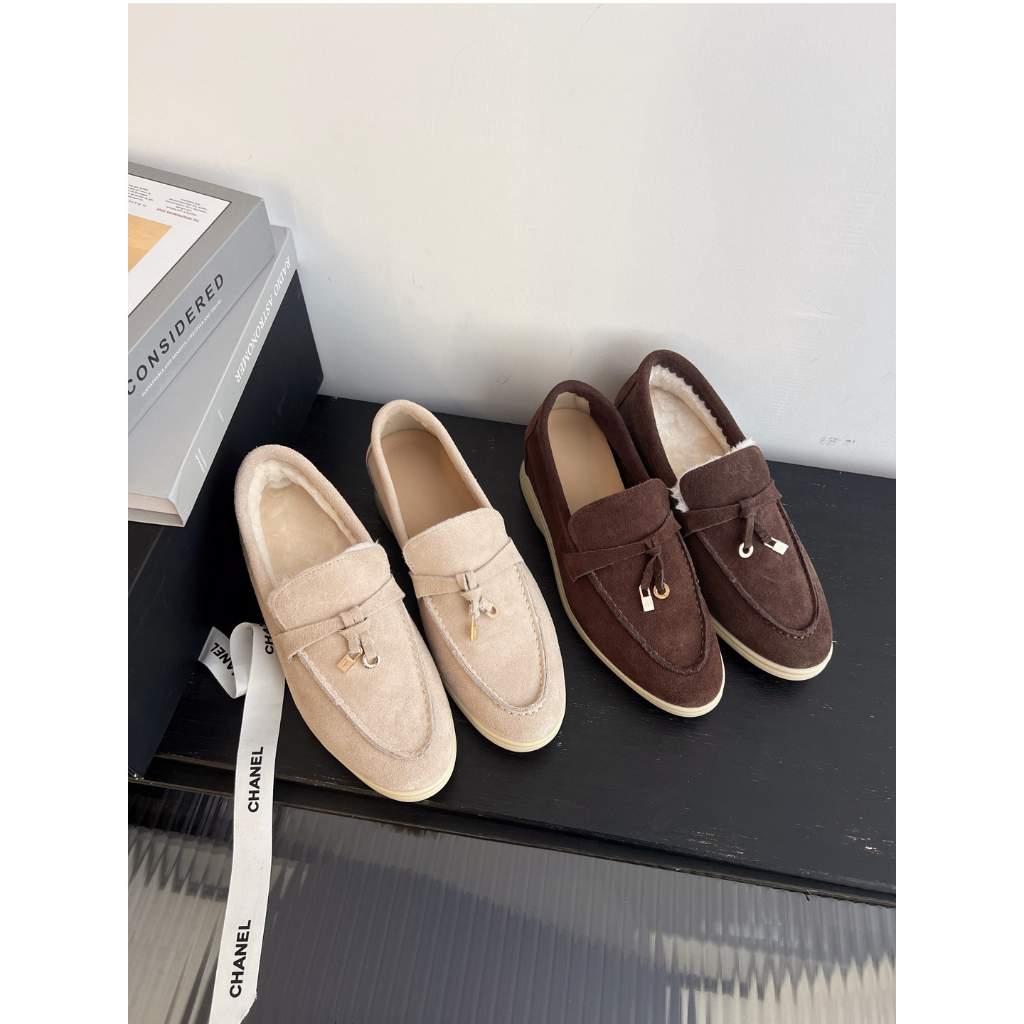 口碑款/准柜级 一脚蹬乐福鞋皮毛一体加绒保暖毛毛鞋懒人休闲单鞋