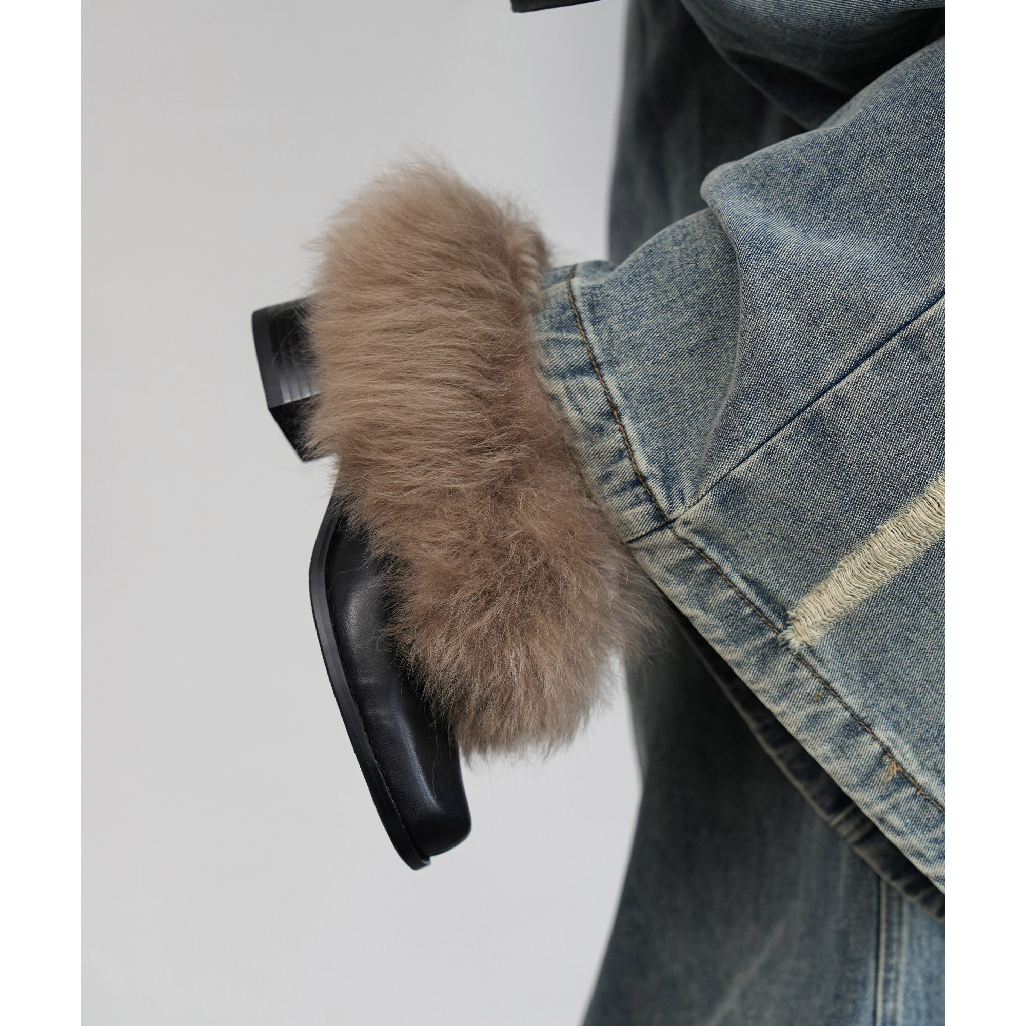 MIA水貂毛 X真牛皮毛毛单鞋3CM坡跟内增高法式气质韩版2024年冬季